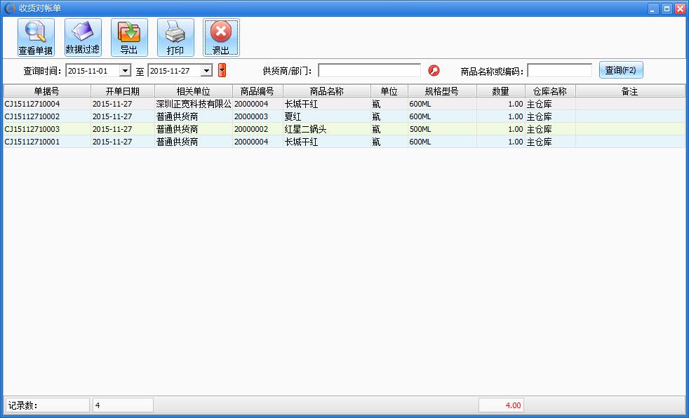 2.5.3、收货对账单:主要进行入库的统计。 |